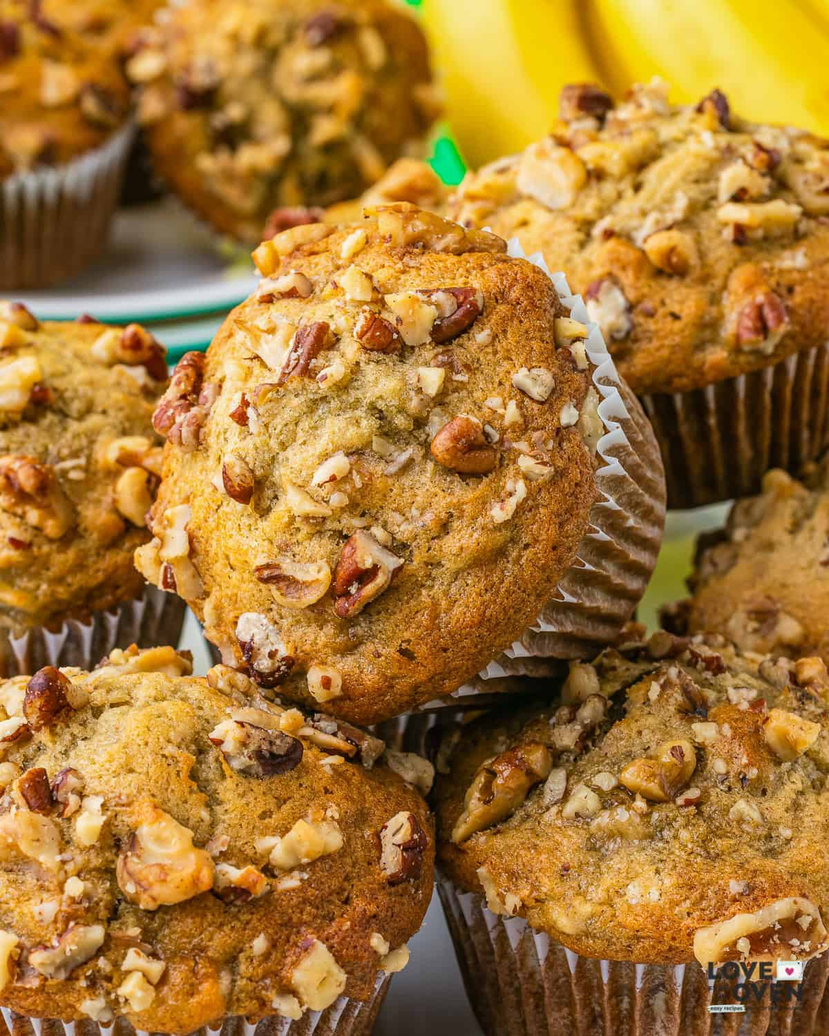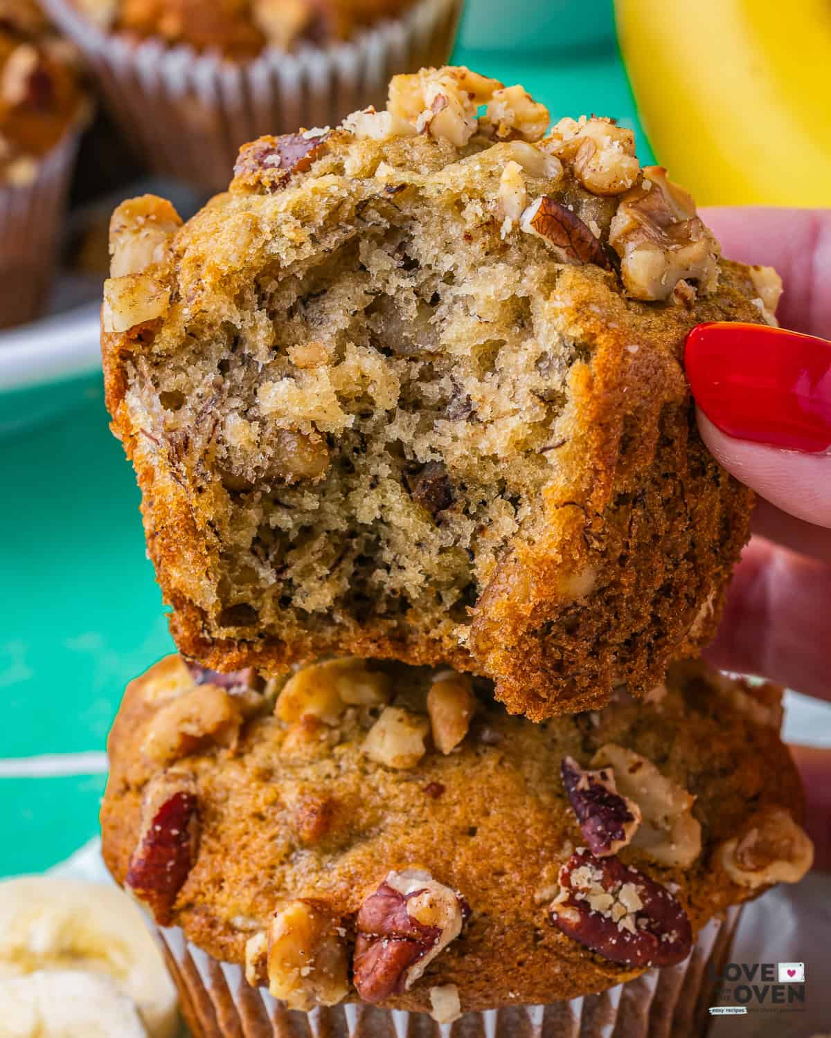 - These Banana Nut Muffins hit every note. From the golden tops, to the moist crumb, the perfect amount of banana flavor and the crunchy goodness of the nuts, these muffins have it all!