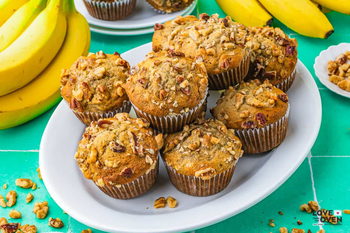 I absolutely love banana bread. With over 16 Banana Bread Recipes on this site, and many more on the way, it’s hard to pick a favorite. But if you love the warm and nutty crunch from chopped walnuts and/or pecans, then I’m confident that this is the Banana Nut Muffin recipe for you!