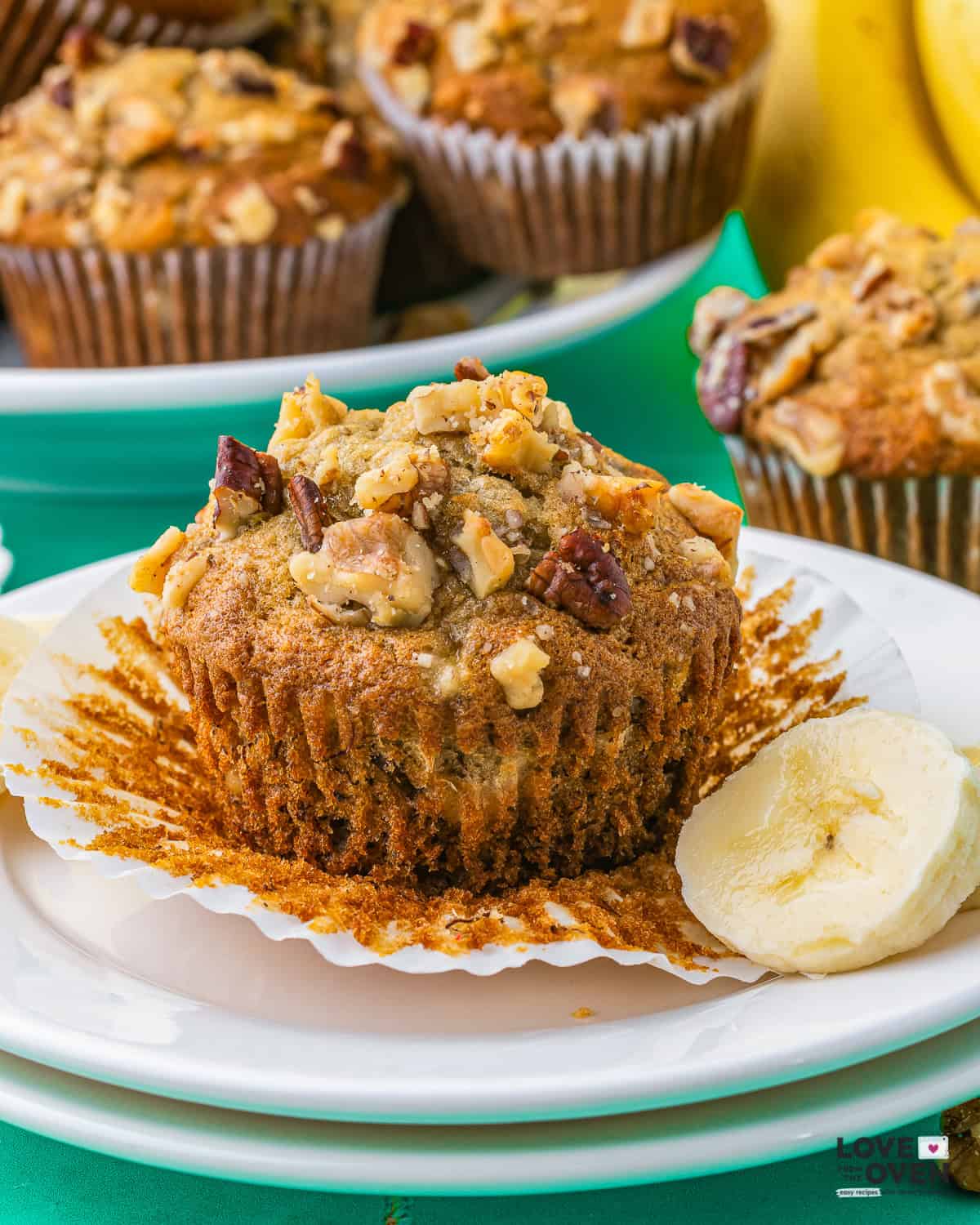 Make sure not to over mix the batter or your banana nut muffins so you can keep your muffins nice and tender.