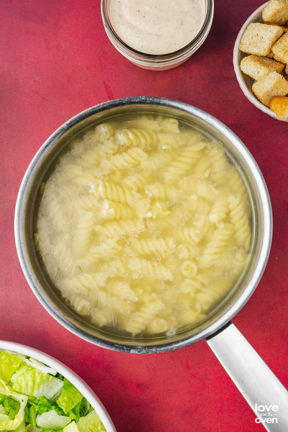 I love Caesar salad, and I love pasta salad. It took me way too long to combine the two, but once I did it was like “why haven’t I done this before?” It’s a delicious way to bulk up a salad and make it more filling, while still enjoying the classic flavor and bite of a traditional Caesar salad.