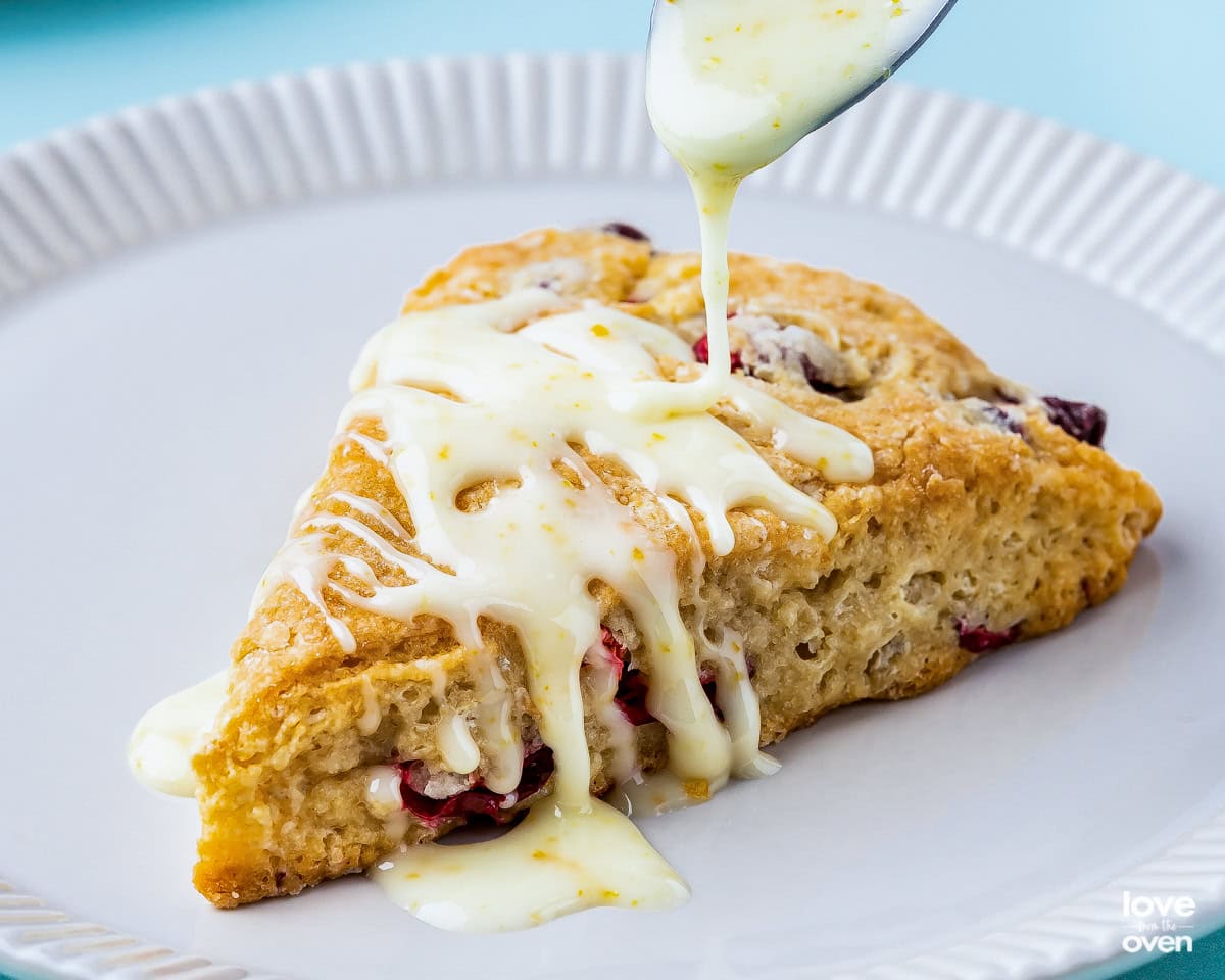 - Combine glaze ingredients then drizzle it onto the scones. Serve and enjoy!