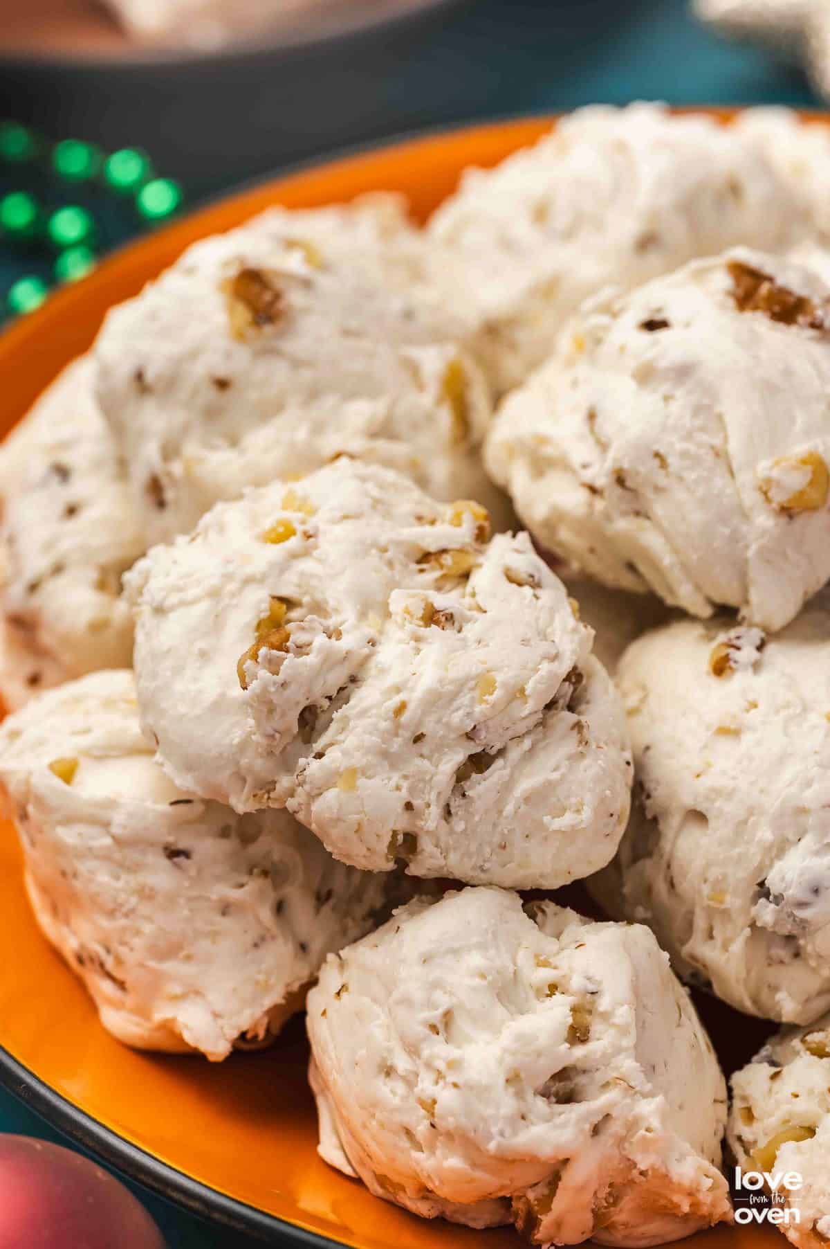 Divinity Candy is one of those treats that grandma always had a batch of during the holiday season. Whether you ate them plain, with walnuts or with pecans, you’ll remember the feeling of biting into one of these for the first time. I personally love adding a few of these to my Christmas cookie tins every year to break up the textures and flavors of my mix. They’re always a hit!