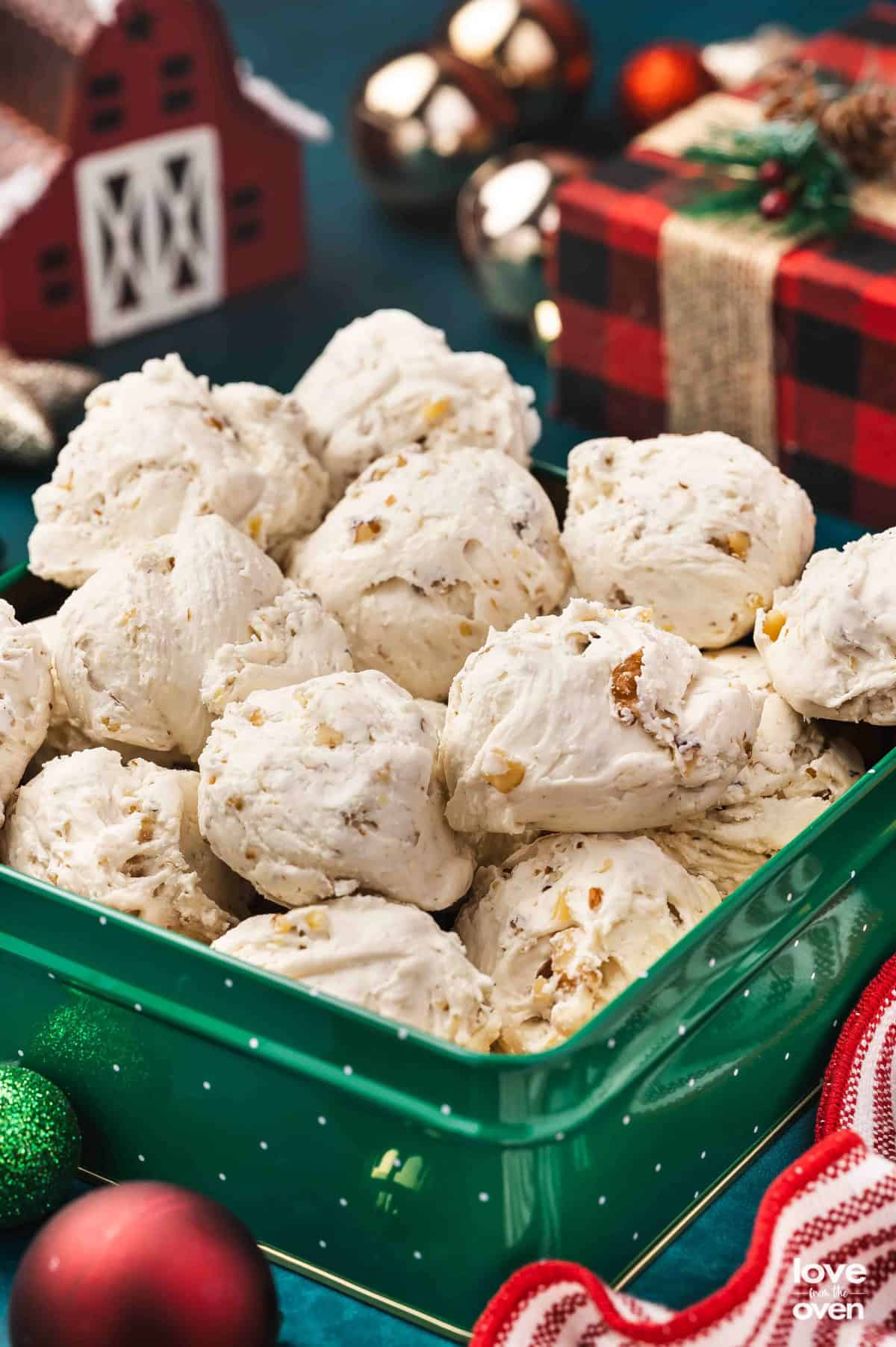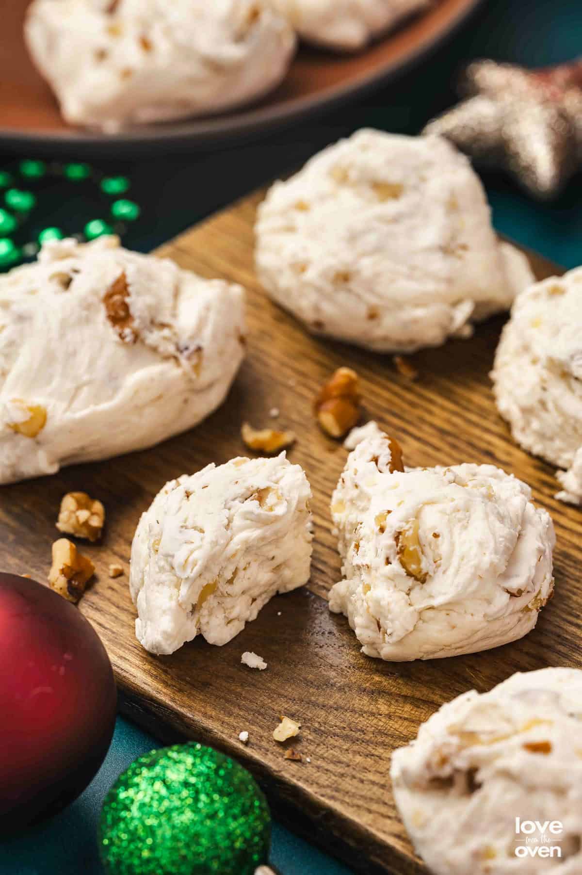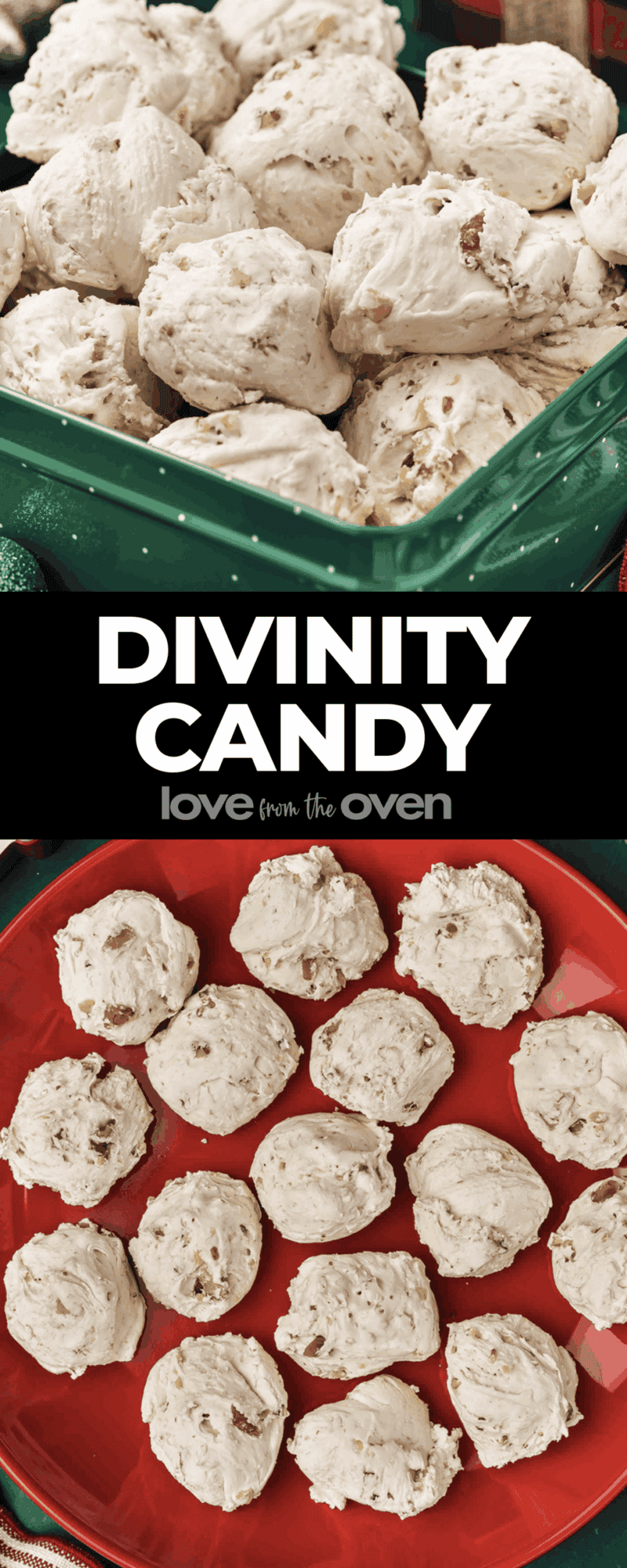 This Divinity Recipe is a classic, old-fashioned Christmas candy that is so nostalgic, easy to make, and absolutely scrumptious! Fluffy egg whites are whipped and sweetened to create a beautiful meringue, chopped pecans are folded in, then all that’s left is for them to harden to become a light, delightful treat that will blow your mind! Once you try the special, holiday treat that is Divinity Candy, you will want to make this every year.