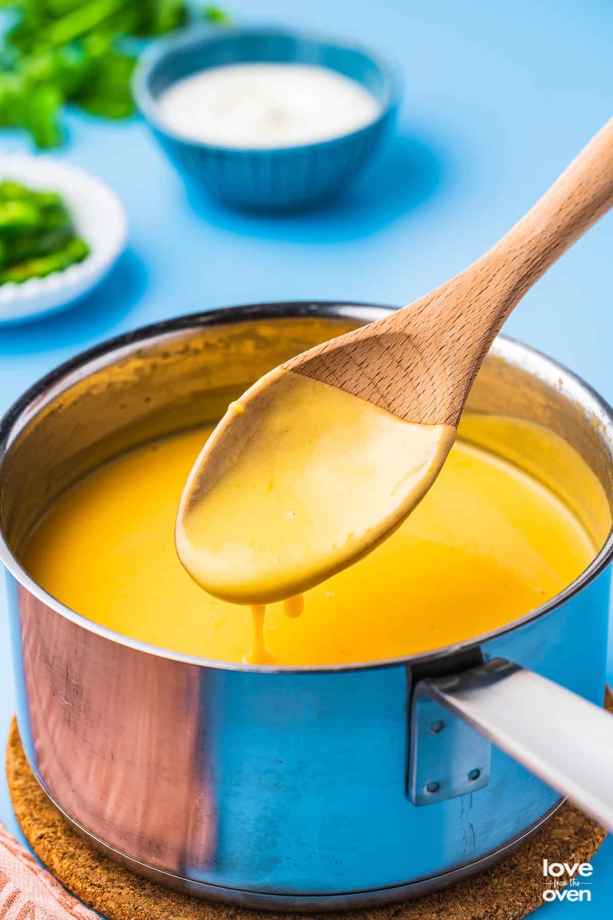 Storage – You can store the leftover cheese sauce in an airtight container in the fridge for 3-4 days. To reheat, pour it back in a saucepan and heat on low until warmed through.
