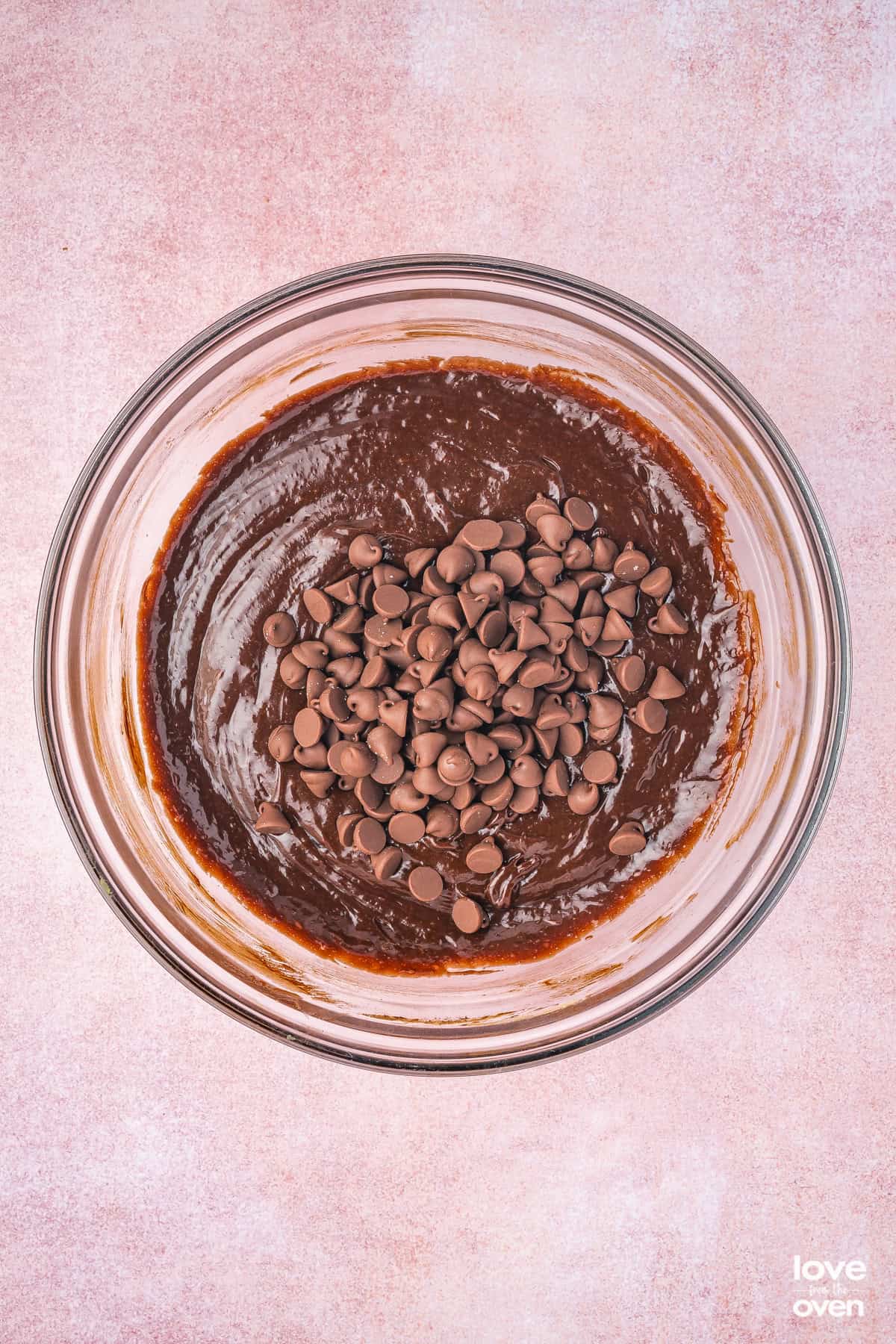- Add the dry ingredients to the wet ingredients and gently fold together until just combined. Do not over-mix. Pour the batter into the prepared cast iron pan and use a spatula to spread it evenly. Sprinkle in the milk chocolate chips.