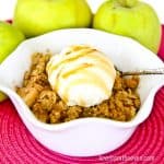 In a separate bowl, combine oats, flour, 1 cup brown sugar and melted butter to create the topping. Once mixed well, sprinkle over the apple mixture in your baking dish.