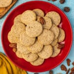 When you’re ready to bake, preheat the oven to 350°F, and line 2 baking sheets with parchment. Take the log out of the fridge, and slice the dough into circles. Each slice should be ½ to a ¼ an inch thick, and make sure you place them about 2 inches apart.