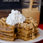 Combine all ingredients in a medium sized bowl and mix well with hand or stand mixer, until well combined. Mixture may be lumpy at first, continue to beat on high until mixture is smooth and well combined. Spoon on top of waffles or serve on the side for dipping. Store any extras in refrigerator.
